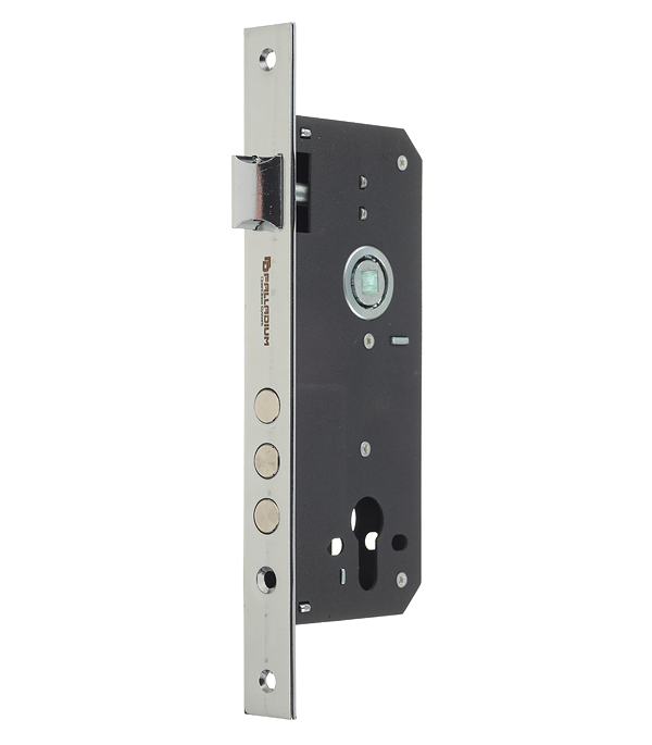 Врезной замок для межкомнатных и входных дверей. Комплектуется латунным евроцилиндром с 6 пинами и закаленными вставками против высверливания твердостью 62HRC. Имеются дополнительные отверстия для установки раздельной фурнитуры и броненакладки.rnШариковый подшипник в узле ручки обеспечивает плавность хода ригелей, легкое вращение ручки и увеличивает срок эксплуатации замка.