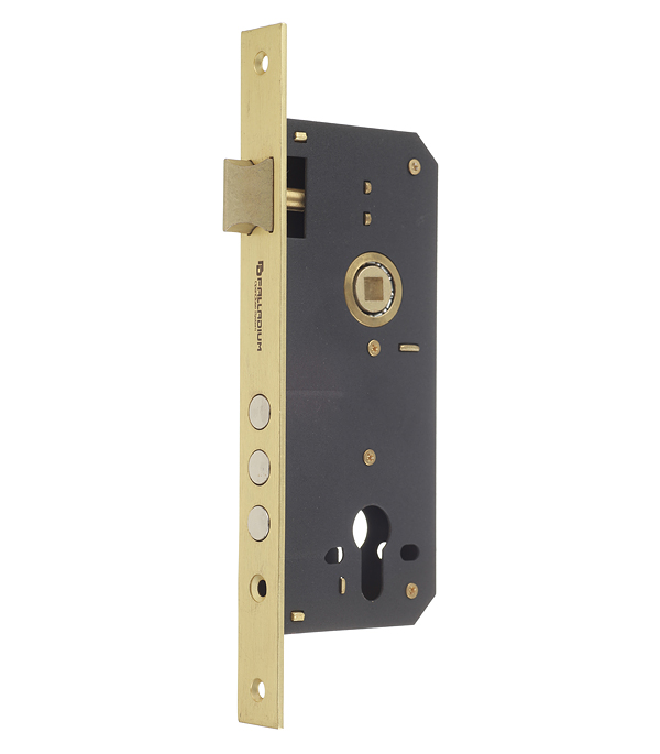 Врезной замок для межкомнатных и входных дверей. Комплектуется латунным евроцилиндром с 6 пинами и закаленными вставками против высверливания твердостью 62HRC. Имеются дополнительные отверстия для установки раздельной фурнитуры и броненакладки.rnШариковый подшипник в узле ручки обеспечивает плавность хода ригелей, легкое вращение ручки и увеличивает срок эксплуатации замка.