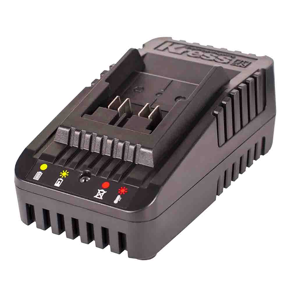 Зарядное устройство KRESS – предназначено для зарядки аккумуляторных батарей KRESS с напряжением 20 В. Для защиты аккумуляторов от перезаряда и перегрева встроен специальный защитный чип.