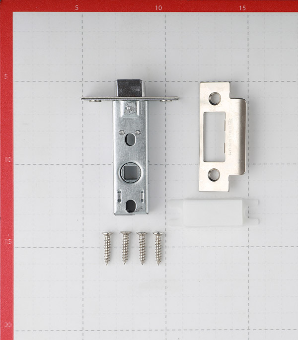 Защелка межкомнатная серии 100. Механизм оснащен металлическим язычком, обеспечивающим максимальный срок службы изделия.rnГарантированное количество циклов безотказной работы узлов защелки более 200000.rnКачество гальванического покрытия подтверждено тестом на устойчивость в камере соляного тумана – более 96 часов.