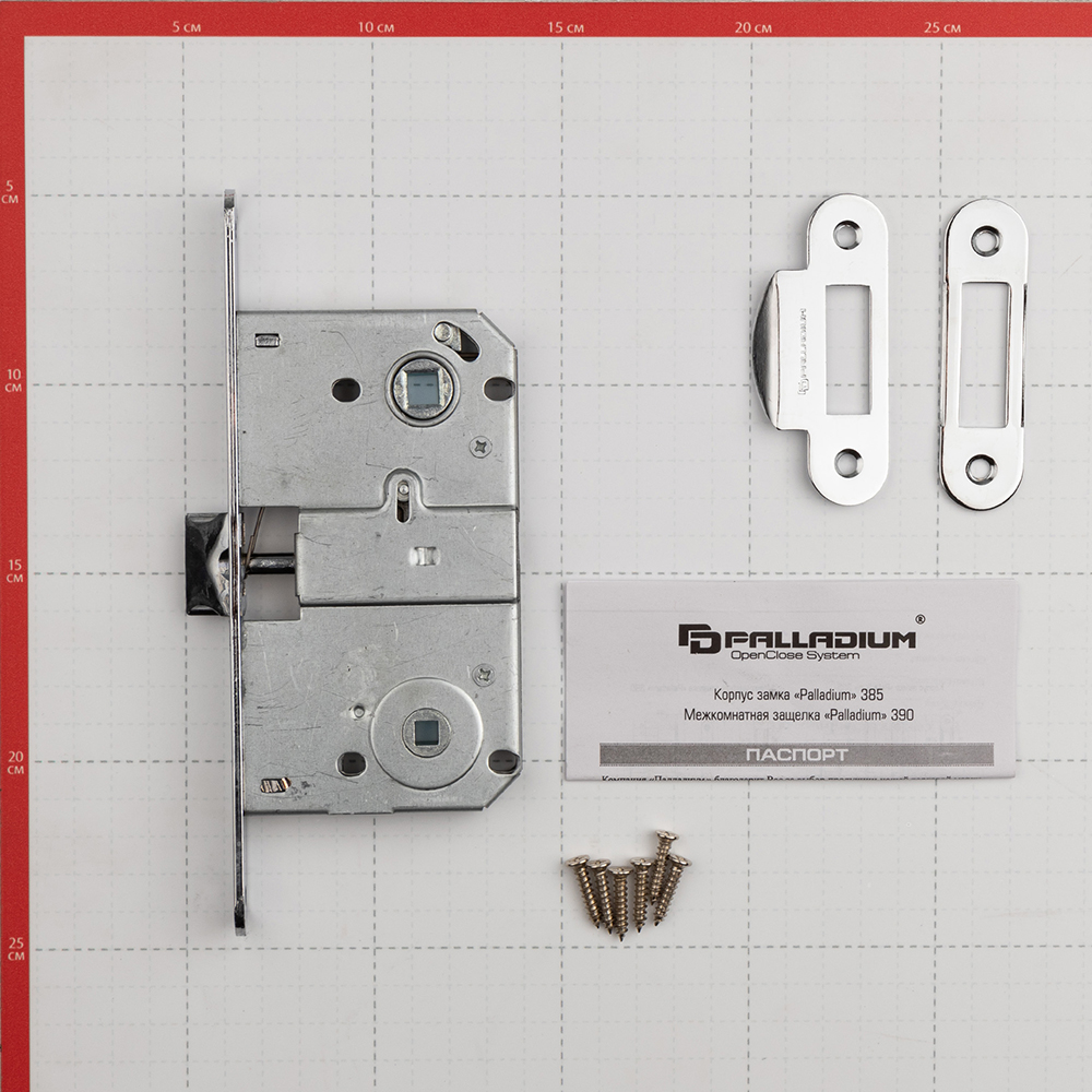 Замок межкомнатный серии 390. Замок межкомнатный оснащен металлическим язычком, обеспечивающим максимальный срок службы изделия. Гарантированное количество циклов безотказной работы узлов замка более 200000. Качество гальванического покрытия подтверждено тестом на устойчивость в камере соляного тумана – более 96 часов.