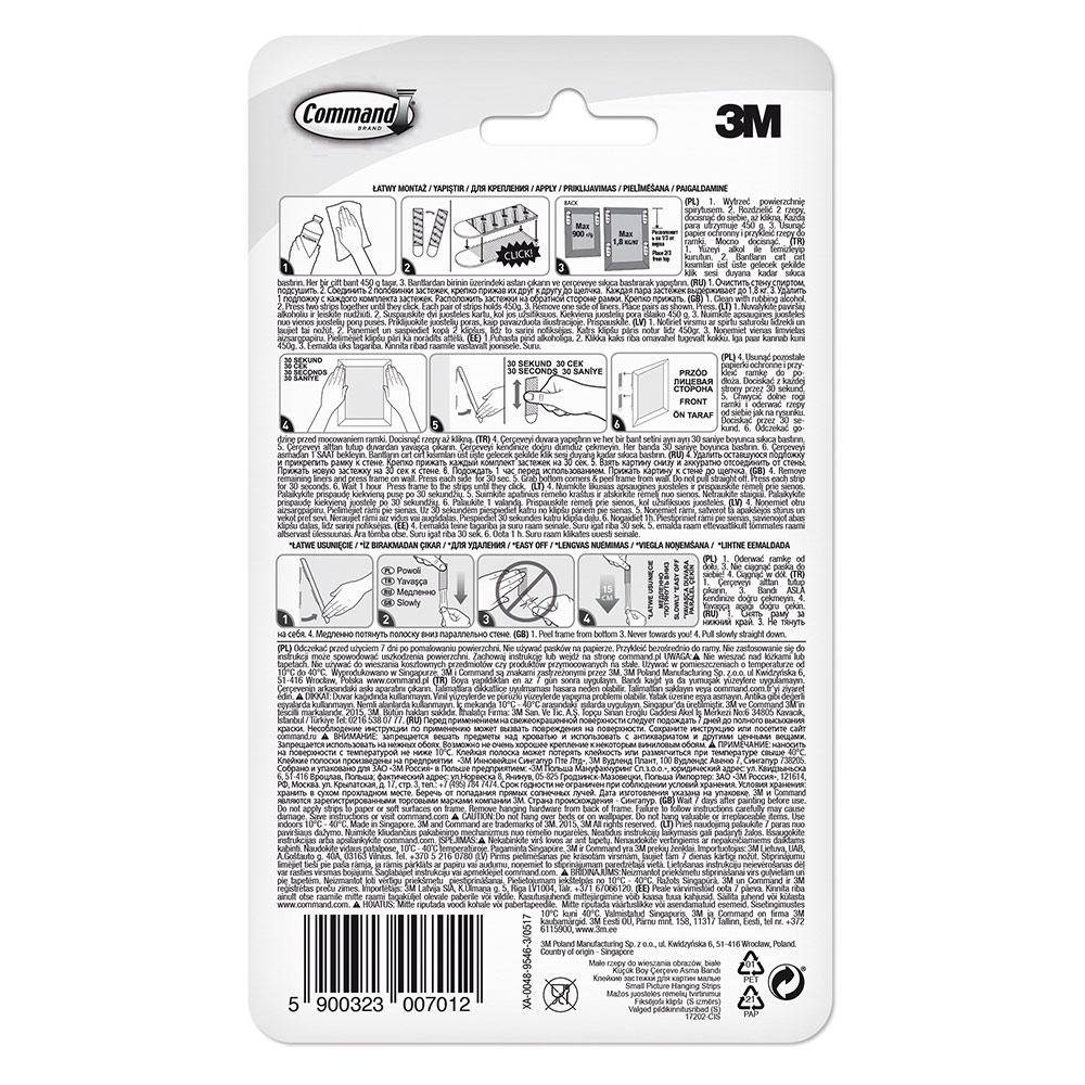 Застежки для картин Command™ – это инновационное решение для крепления картин, постеров и фотографий в раме. Застежки надежно держат и легко снимаются благодаря технологии 3M Stretch-Release.rnС помощью застежек Command™ можно быстро и легко украсить интерьер. А когда вы снова будете готовы к переменам, их можно легко снять, не повреждая поверхности. Никаких отверстий, повреждений краски или следов клея. Возможности декорирования безграничны! Идеально подходят для съемного жилья, если вы не хотели бы повреждать стены. Малые полоски подойдут для большинства рамок размером до 20 см х 25 см.