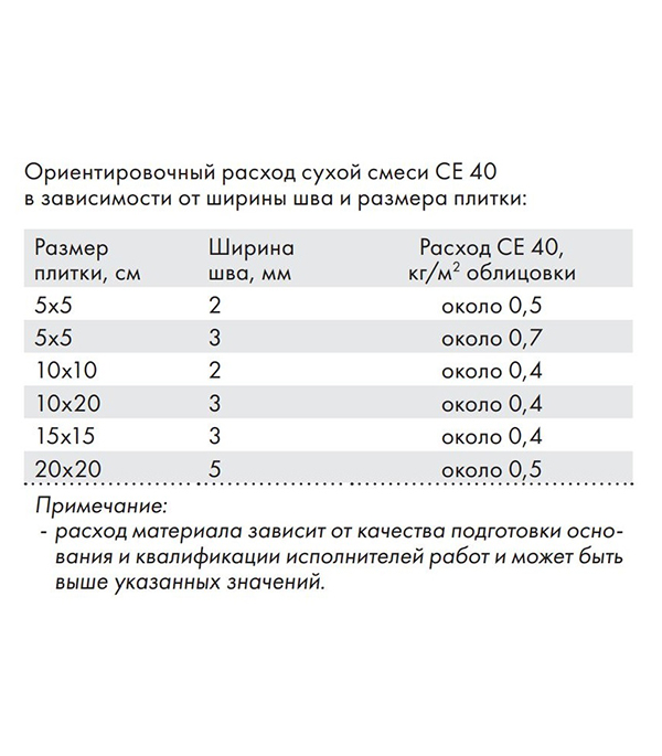 При заделке швов температура облицовываемой поверхности, раствора, плитки и воды должна быть от +5°С до +30°С. Основание и плиточный клей должны быть сухими, кромки швов должны быть очищены от плиточного клея и загрязнений. Рекомендуется предварительно смочить края плиток влажной губкой.