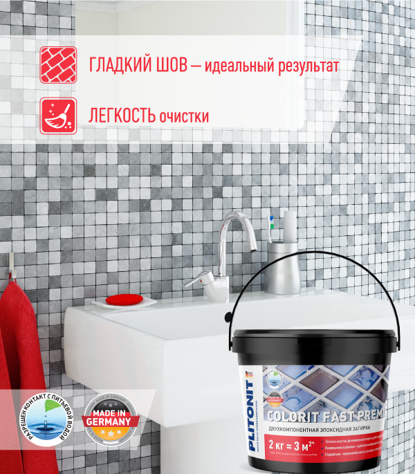 - легкость замывки обеспечивает высокую скорость выполнения работ эпоксидной затиркой Plitonit: 1 м²/мин