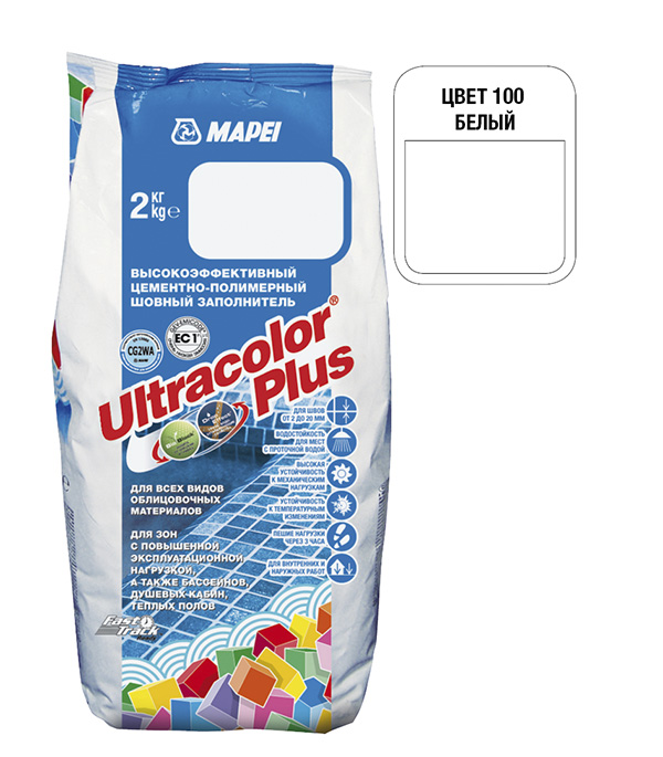 Затирка Mapei Ultracolor Plus 100 белая 2 кг