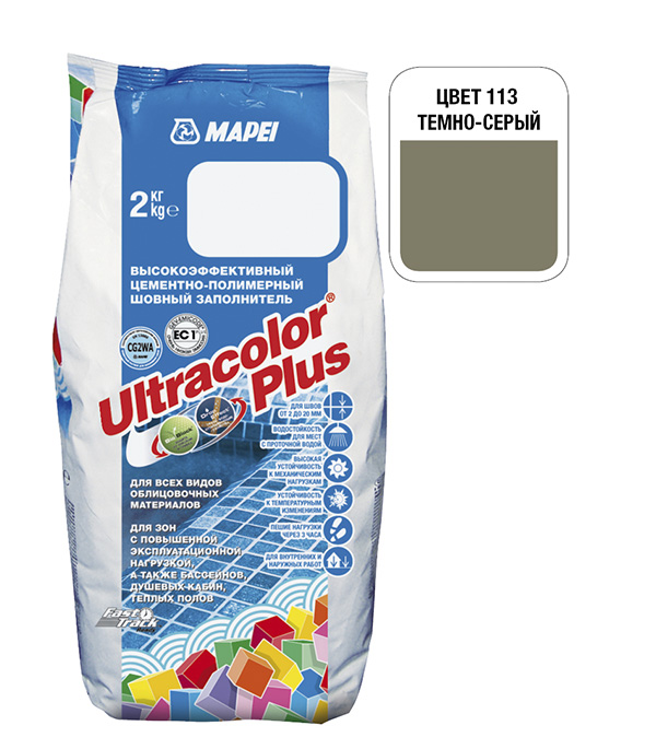 Затирка Mapei Ultracolor Plus 113 тёмно-серая 2 кг