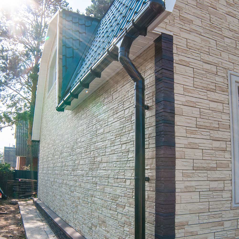 Предназначен для организованного сбора и отвода дождевой воды с поверхности крыши. Элементы просто соединяются друг с другом и легко защелкиваются. При этом каждое соединение трубы или желоба с фитингом являются компенсатором температурного расширения/сжатия.
