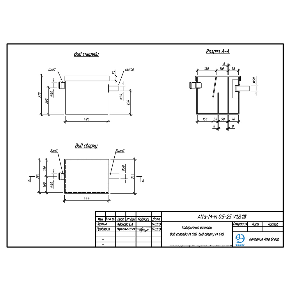 Жироуловитель под мойку Alta M-In 1-70 – это устройство, предназначенное очищать сточные воды от жиров различного происхождения (растительного и животного), поступающих из точек общественного питания: кухонь, кафе, столовых и ресторанов.rn Жироуловитель Alta M-In 1-70 имеет небольшие размеры и устанавливается под мойкой до попадания стока в трубопровод канализации.