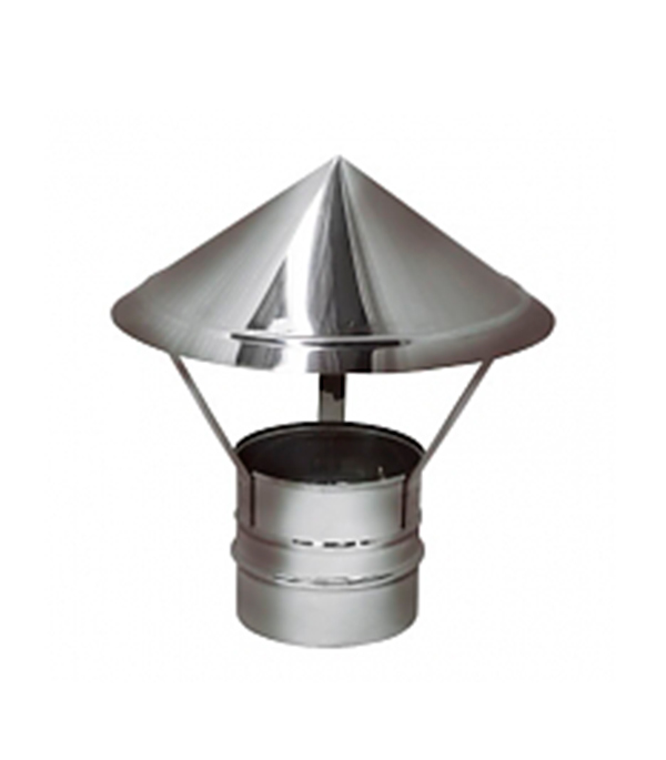 Предназначен для предохранения дымоходов от атмосферных осадков, является завершающим элементом дымового канала.rnНержавеющая сталь марки AISI 304, толщина 0,5 мм. rnНоминальная температура дымовых газов 650 °C.rnМаксимальная краткосрочная 1000 °C.