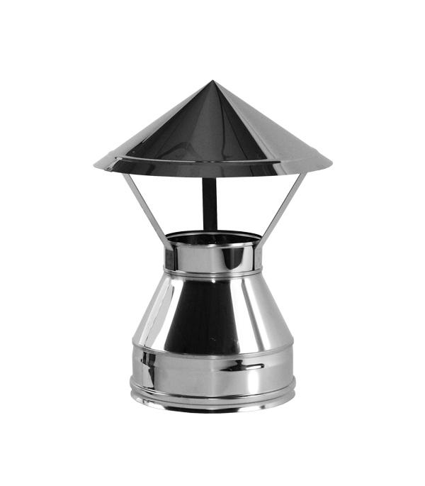 Предназначен для предохранения двустенных дымоходов от атмосферных осадков, является завершающим элементом дымового канала.rnВнутренний контур нержавеющая сталь марки AISI 321, толщина 0,5 мм, номинальная температура дымовых газов 750 °C, максимальная краткосрочная 1000 °C. rnНаружный контур нержавеющая сталь марки AISI 304, толщина 0,5 мм, номинальная температура дымовых газов 650 °C, максимальная краткосрочная 1000 °C.