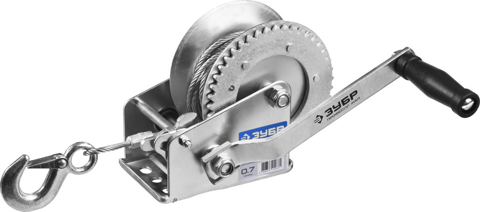 ЗУБР 0,7 т, 8 м, тяговая, тросовая, лебедка ручная барабанная 43113-0.7_z01 Профессионал