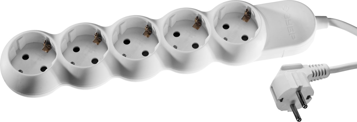 ЗУБР 1.5 м, 3500 Вт, 5 гнезд, удлинитель электрический бытовой 55058-1.5