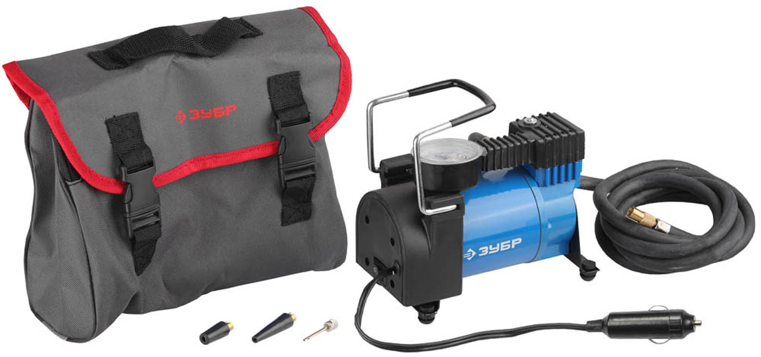 ЗУБР 10 атм, провод 3 м, шланга 2 м, 3 насадки, компрессор автомобильный 61127 Эксперт