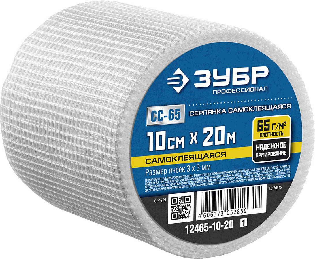 ЗУБР 10 см х 20 м, 3х3 мм, сетка самоклеящаяся стеклотканевая 12465-10-20_z01 Профессионал