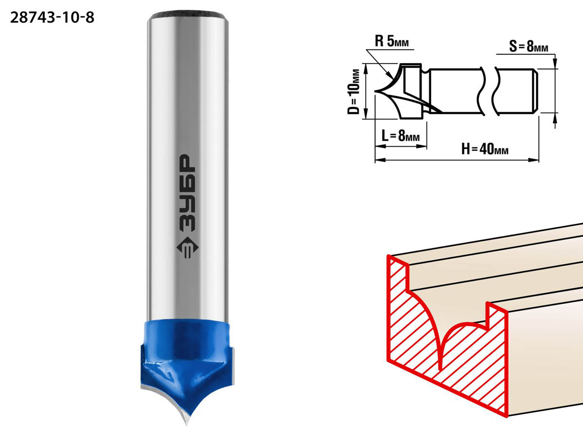 ЗУБР 10 x 8 мм, радиус 5 мм, фреза пазовая фасонная №4 28743-10-8 Профессионал