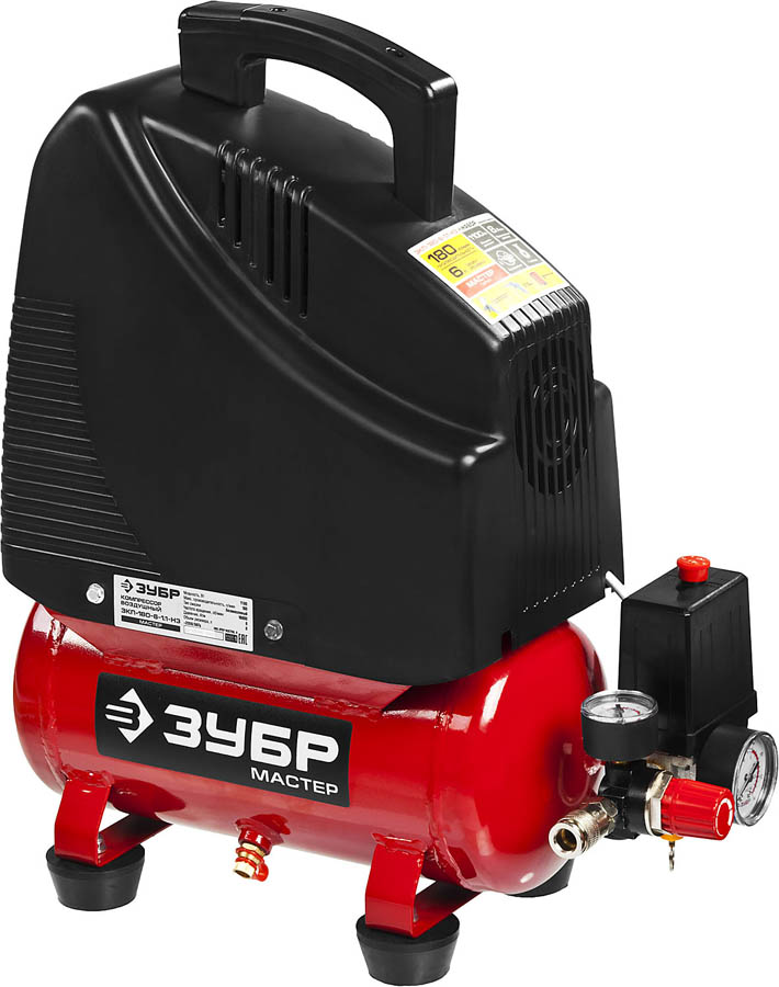 ЗУБР 1100 Вт, 180 л/мин, 6 л, поршневой, безмасляный, компрессор электрический ЗКП-180-6-1.1 Мастер