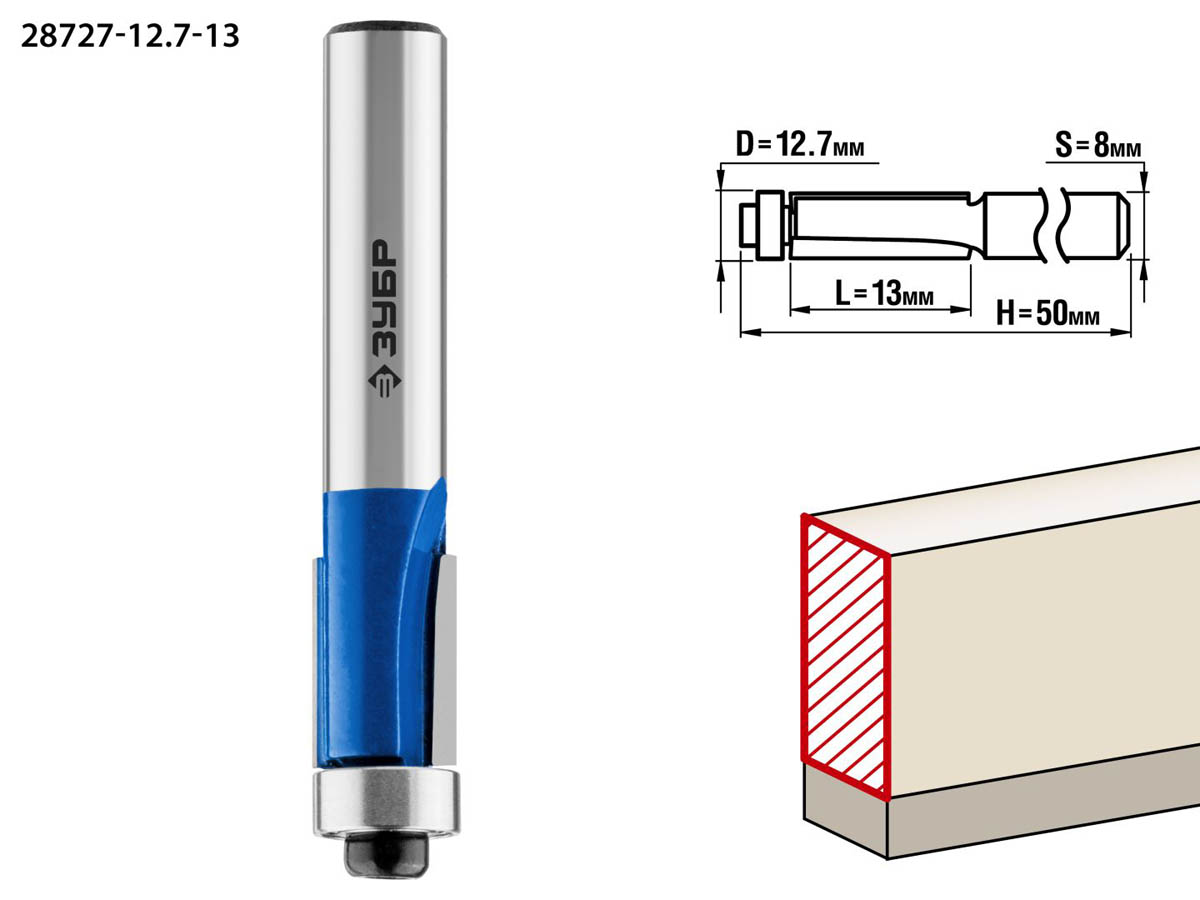 ЗУБР 12.7 x 13 мм, хвостовик 8 мм, фреза кромочная с нижним подшипником 28727-12.7-13 Профессионал