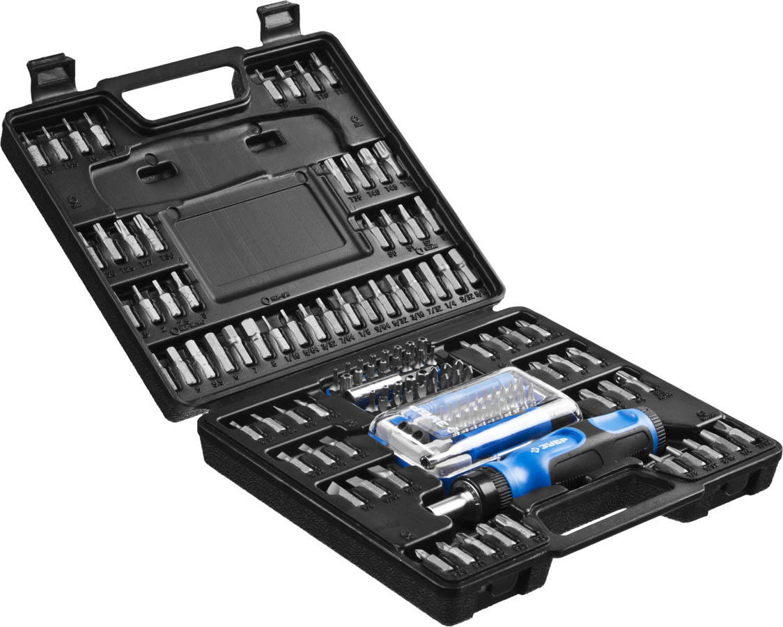 ЗУБР 130 шт., отвертка реверсивная в наборе с битами и отсеком для бит в рукоятке 25237-H129