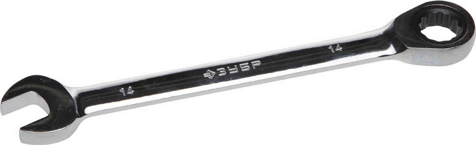 ЗУБР 14 мм, Cr-V сталь, хромированный, гаечный ключ комбинированный трещоточный 27074-14 Профессионал
