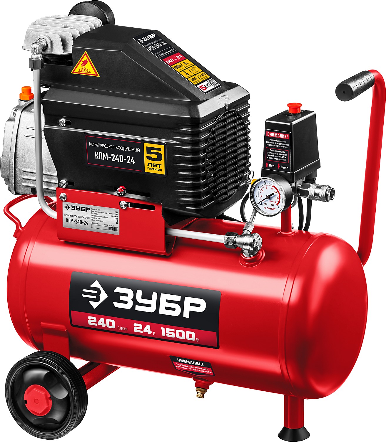 ЗУБР 1500 Вт, 240 л/мин, 24 л, поршневой, масляный, компрессор воздушный КПМ-240-24 Мастер