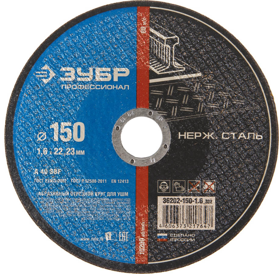 ЗУБР 150х1.6х22.23 мм, круг отрезной по нержавеющей стали для УШМ 36202-150-1.6_z02 Профессионал