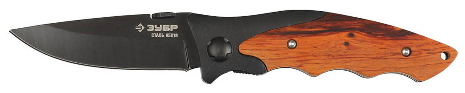 ЗУБР 185 мм/лезвие 80 мм, металлическая рукоятка с деревянными вставками, нож складной СТРЕЛЕЦ 47711
