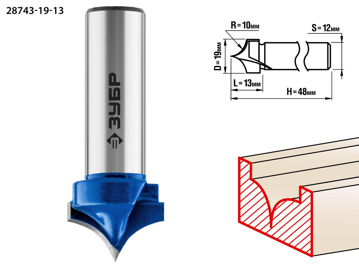 ЗУБР 19 x 13 мм, радиус 10 мм, фреза пазовая фасонная №4 28743-19-13 Профессионал