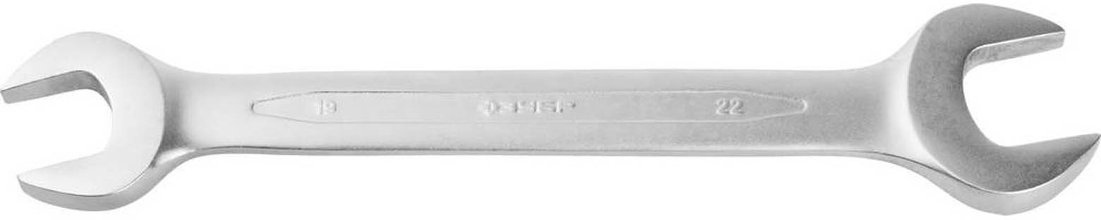 ЗУБР 19х22 мм, Cr-V сталь, хромированный, гаечный ключ рожковый 27027-19-22 Профессионал