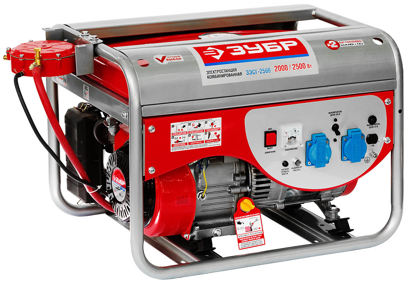 ЗУБР 2.3/2.5 кВт, однофазный, синхронный, щеточный, генератор комбинированный бензин-газ ЗЭСГ-2500 Мастер