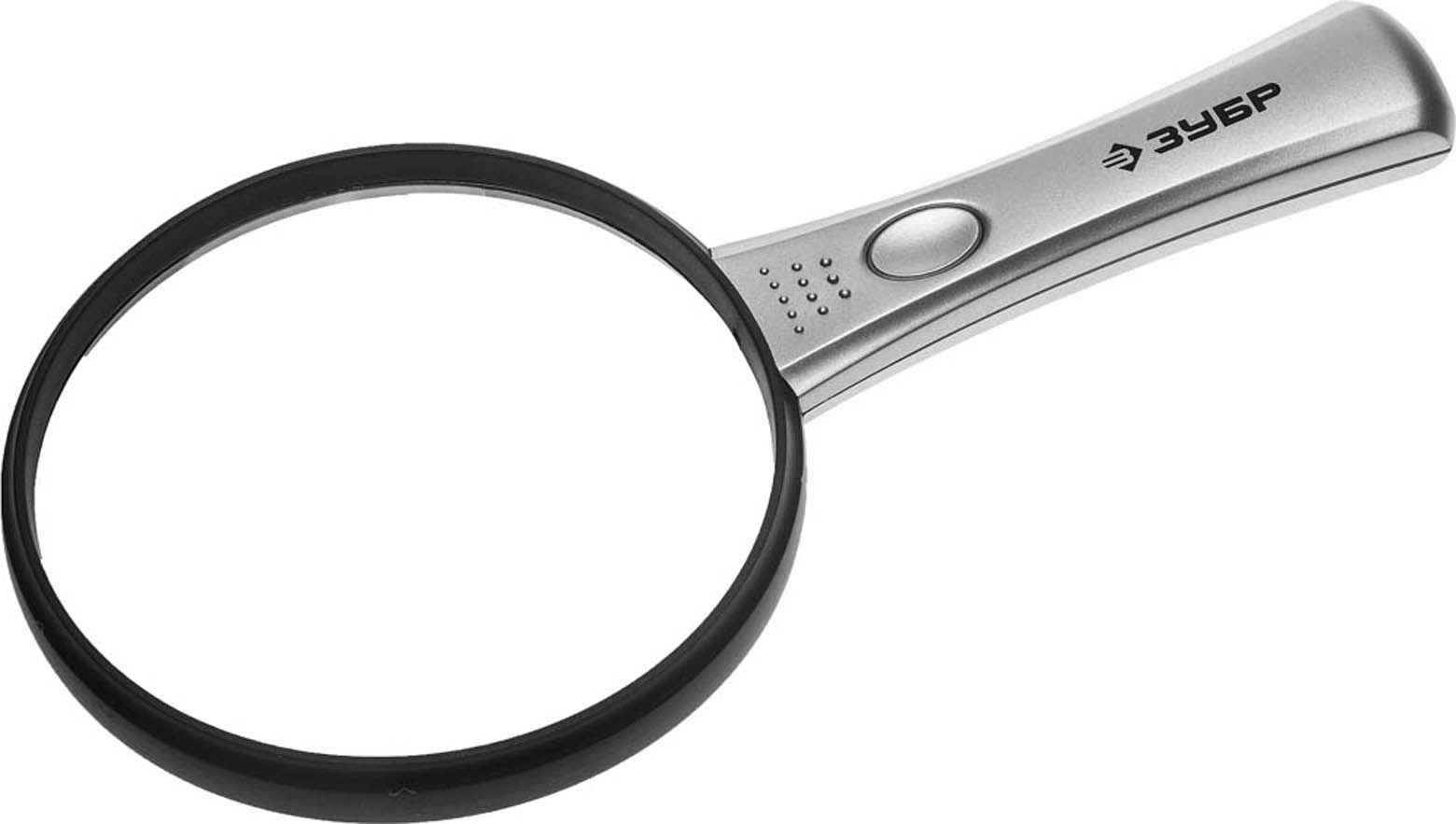ЗУБР 2/4 кратное увеличение, Ø 100 мм, пластиковая линза, лупа с подсветкой МАСТЕР 40541-100