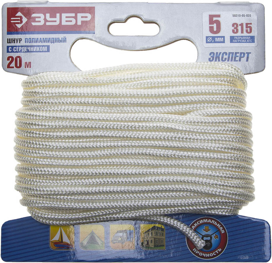ЗУБР 20 м, 5 мм, плетеный, повышенной нагрузки, с сердечником, белый, шнур полиамидный 50310-05-020