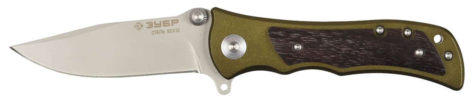 ЗУБР 200 мм/лезвие 95 мм, металлическая рукоятка с деревянными вставками, нож складной СЛЕДОПЫТ 47713
