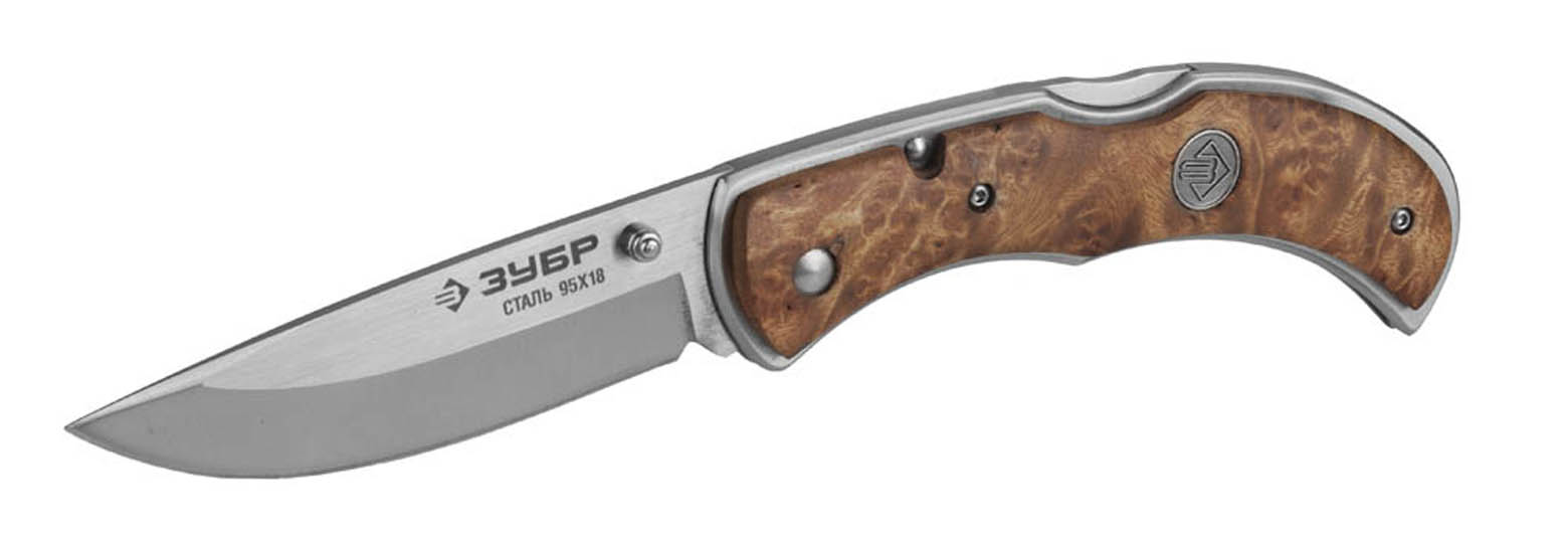 ЗУБР 220 мм/лезвие 95 мм, рукоятка с деревянными накладками, нож складной НОРМАНН 47714