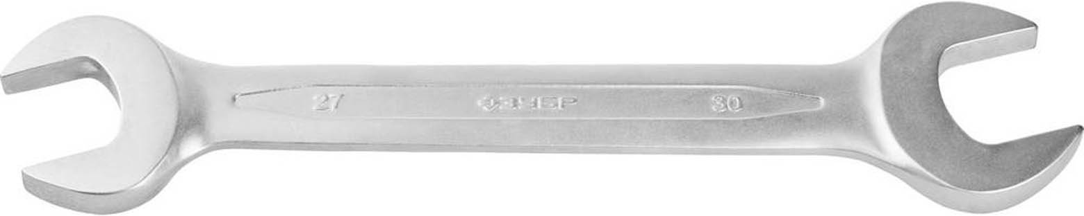 ЗУБР 27х30 мм, Cr-V сталь, хромированный, гаечный ключ рожковый 27027-27-30 Профессионал