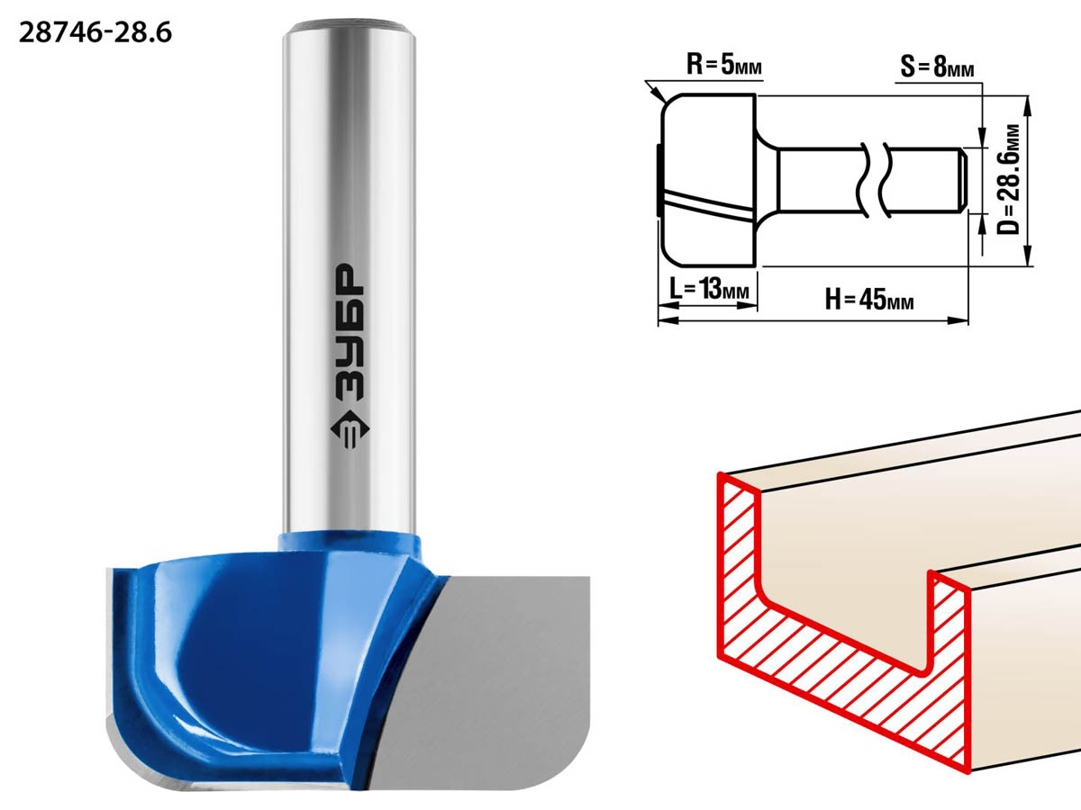 ЗУБР 28.6 x 13 мм, радиус 5 мм, фреза пазовая фасонная №7 28746-28.6 Профессионал