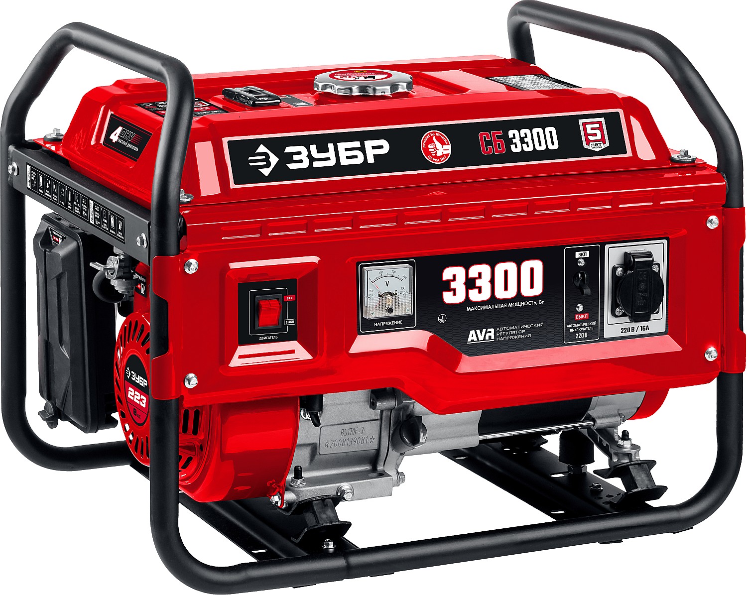 ЗУБР 3.3 кВт, однофазный, синхронный, щеточный, бензиновый генератор СБ-3300 Мастер
