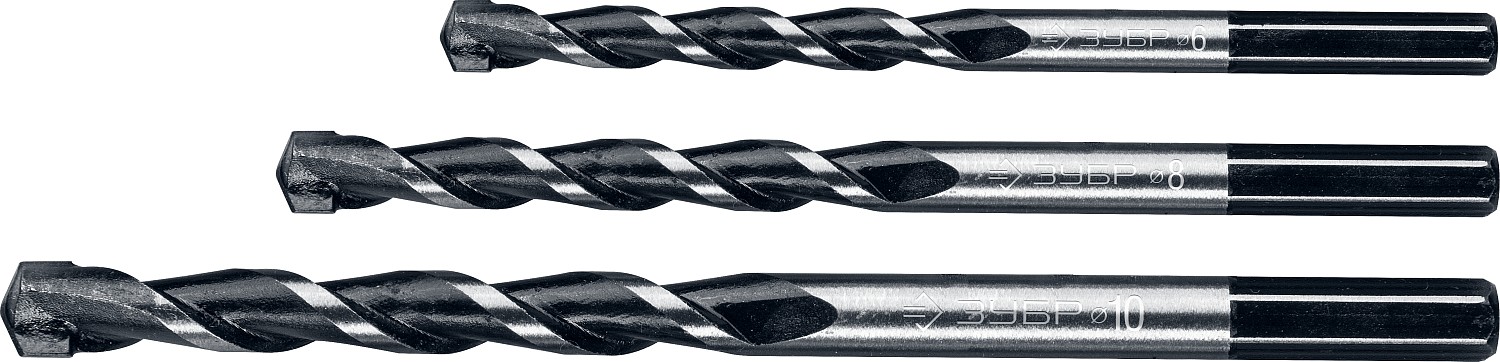 ЗУБР 3 шт: Ø 5-6-8 мм, набор сверл по бетону 2916-H3 Профессионал