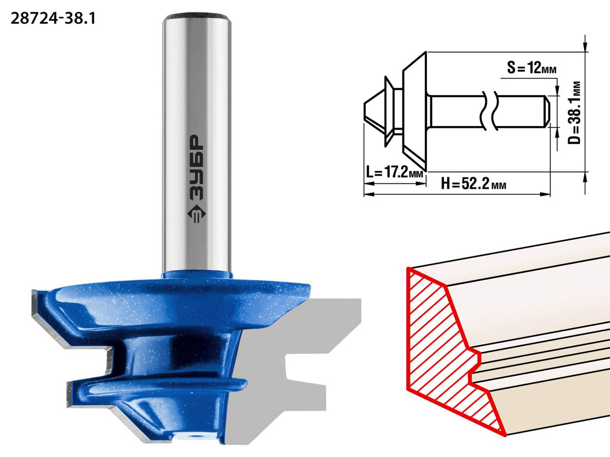 ЗУБР 38.1 x 17.2 мм, хвостовик 12 мм, фреза кромочная для углового сращивания 28724-38.1 Профессионал