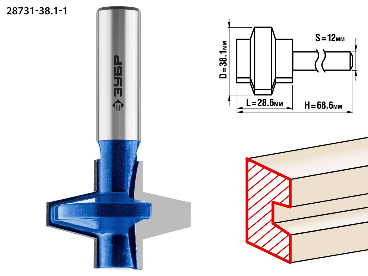 ЗУБР 38.1 x 28.6 мм, хвостовик 12 мм, фреза пазо-шиповая наборная 28731-38.1-1 Профессионал