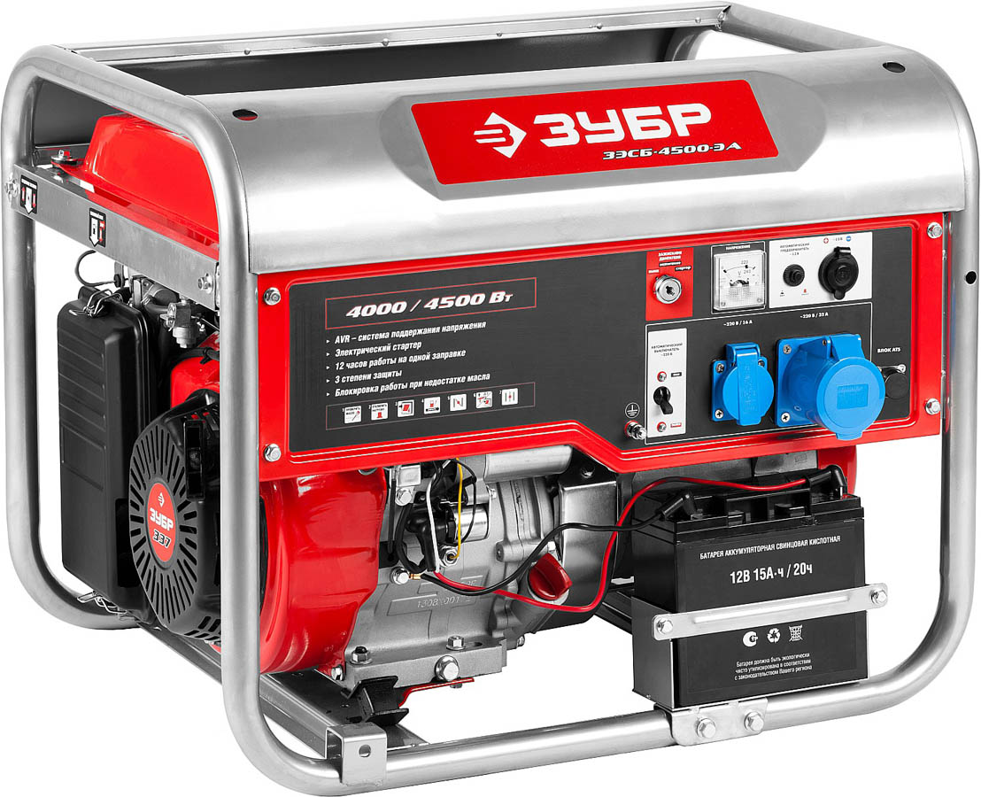 ЗУБР 4/4.5 кВт, однофазный, синхронный, щеточный, генератор бензиновый ЗЭСБ-4500-ЭА Мастер