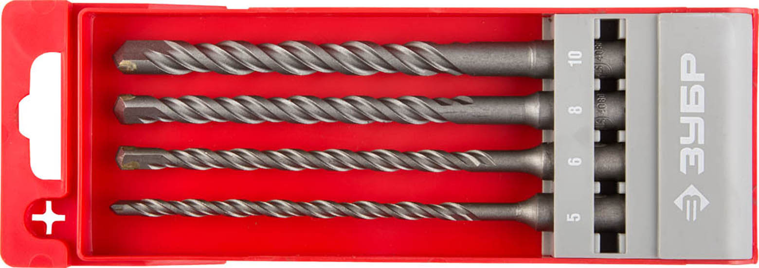 ЗУБР 4 шт.: 5, 6, 8, 10 мм, SDS-plus, набор буров по бетону 29315-H4