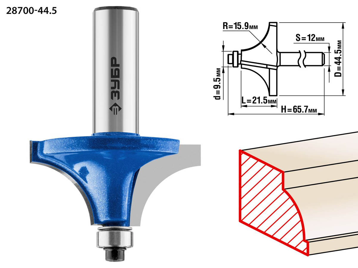 ЗУБР 44.5 x 21.5 мм, радиус 15.9 мм, фреза кромочная калевочная №1 28700-44.5 Профессионал