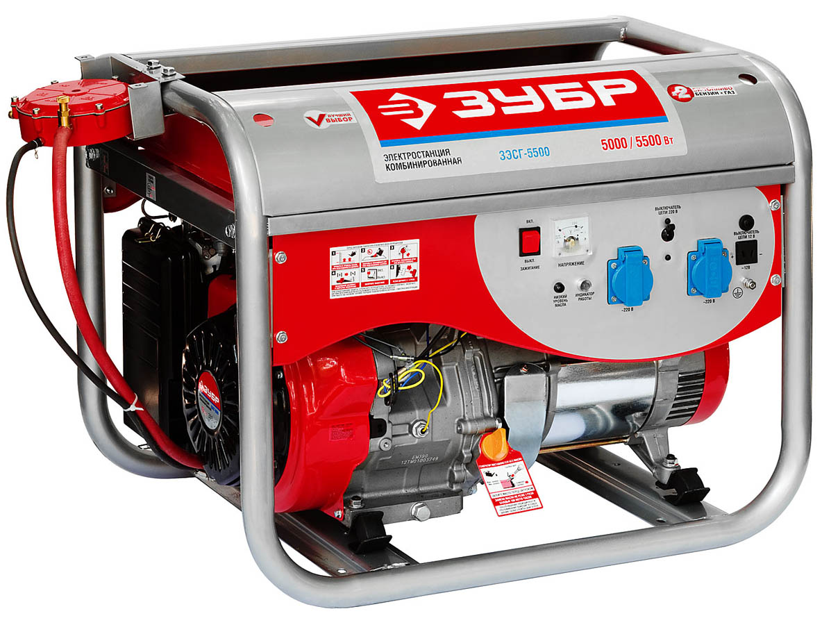 ЗУБР 5/5.5 кВт, однофазный, синхронный, щеточный, генератор комбинированный бензин-газ ЗЭСГ-5500 Мастер