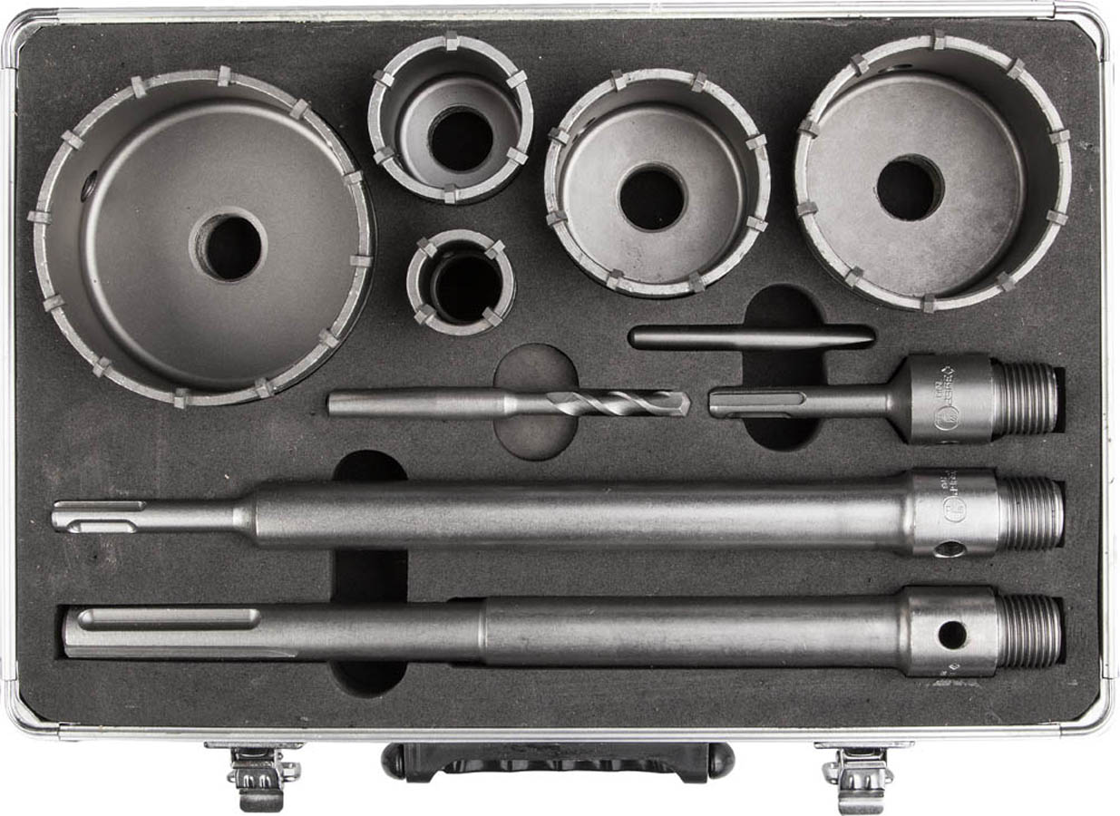 ЗУБР 5 шт: d=33-50-68-82-100 мм коронки 40Х, HRC 45-50, державки, сверло, клин, набор буровых коронок 29185-H10