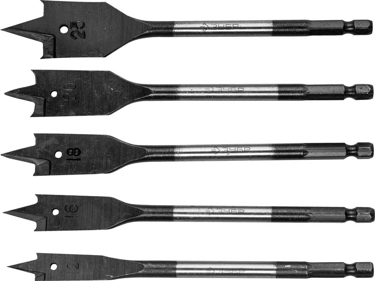 ЗУБР 5 шт., Ø 12-16-18-20-25 мм, HEX 1/4", набор сверл перовых по дереву "Перо" 29505-H5 Мастер
