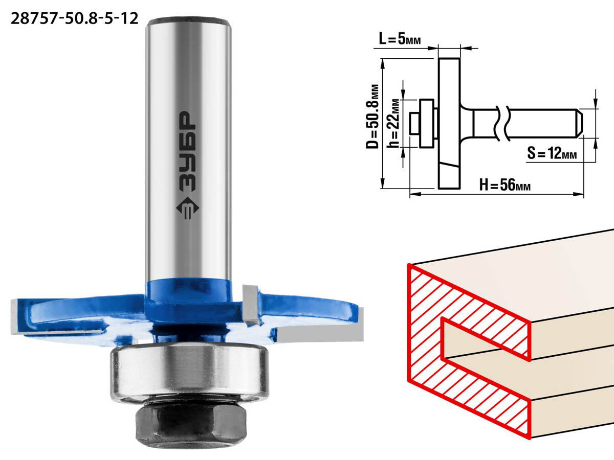 ЗУБР 50.8 x 5 мм, хвостовик 12 мм, фреза горизонтально-пазовая 28757-50.8-5-12 Профессионал
