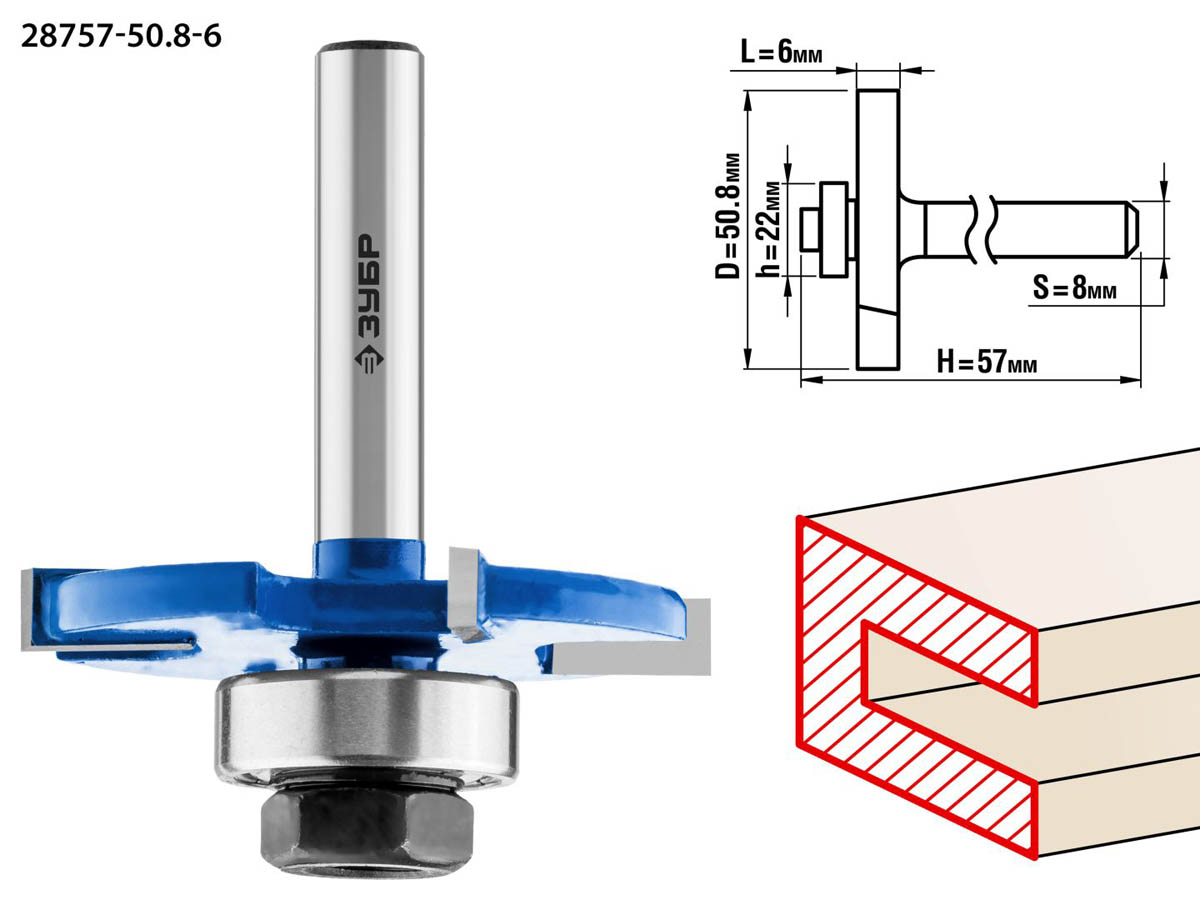 ЗУБР 50.8 x 6 мм, хвостовик 8 мм, фреза горизонтально-пазовая 28757-50.8-6 Профессионал