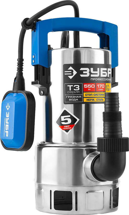 ЗУБР 550 Вт, 170 л/мин, насос погружной дренажный для грязной воды НПГ-Т3-550-С Профессионал