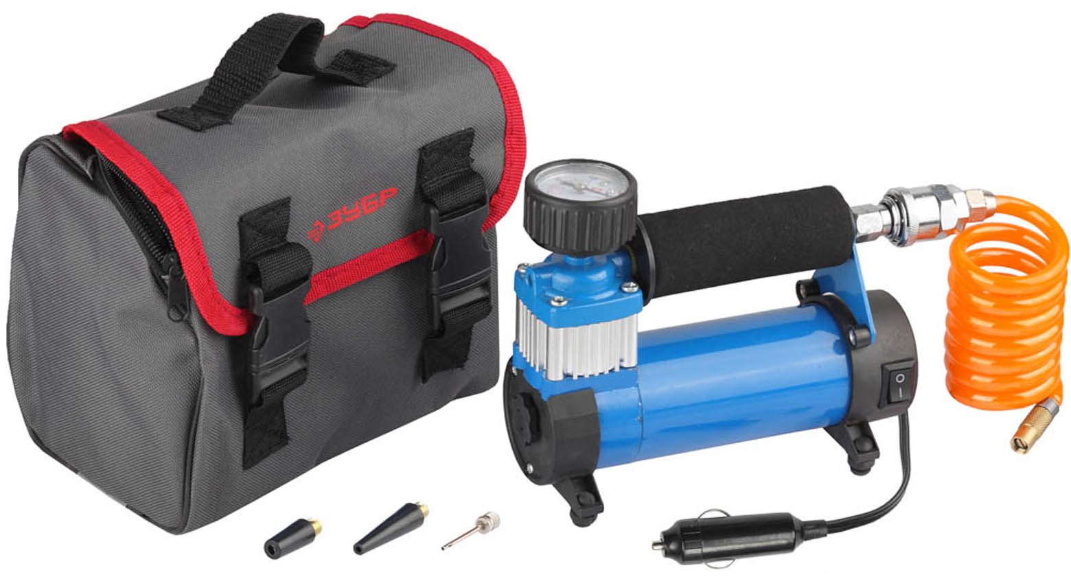 ЗУБР 7 атм, провод 3 м, шланг 1 м, 3 насадки, компрессор автомобильный 61125 Эксперт