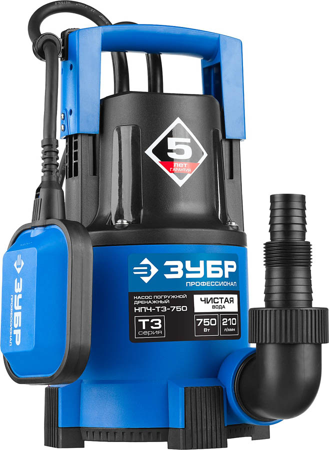 ЗУБР 750 Вт, 210 л/мин, насос погружной дренажный для чистой воды НПЧ-Т3-750 Профессионал